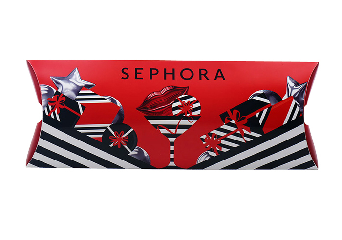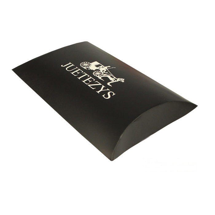 Caja de almohada negra de papel personalizada con logotipo de estampado de papel de plata |